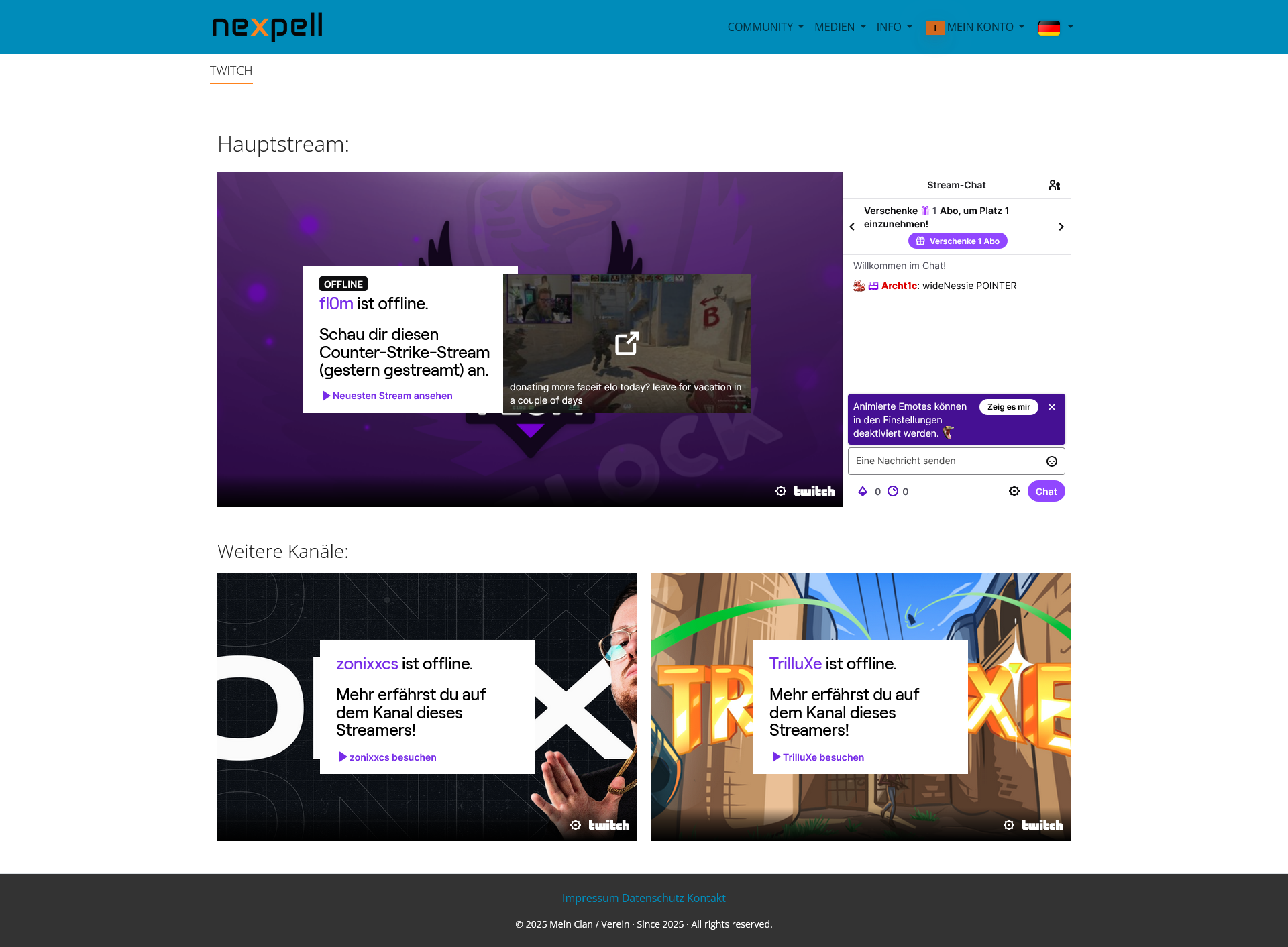 Beim Laden externer Inhalte wie Twitch-Streams, Discord-Widgets oder YouTube-Videos werden Cookies von diesen Plattformen gesetzt. Diese dienen z. B. der Nutzererkennung, Analyse oder der Optimierung der Dienste.